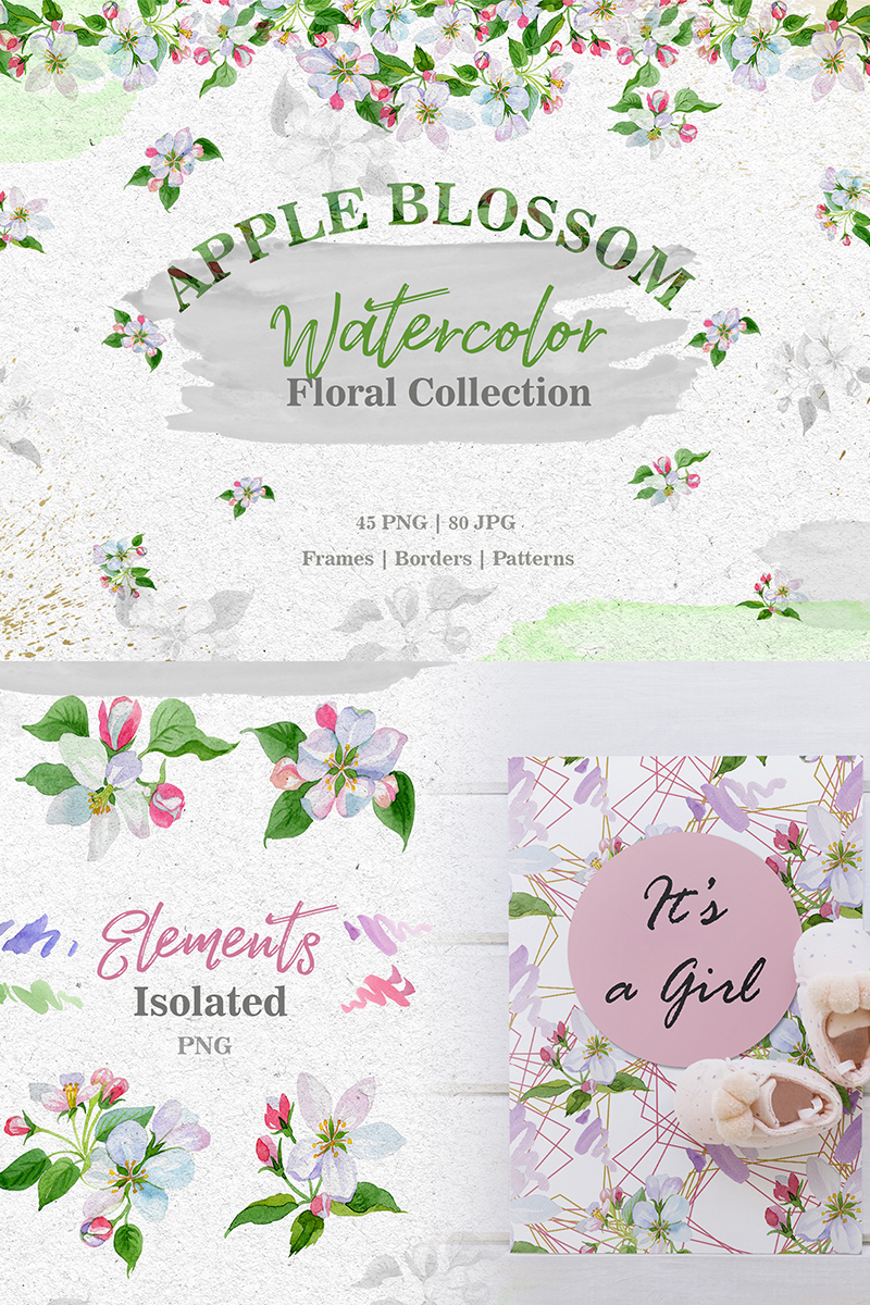 Download Иллюстрация "Apple Blossom PNG Watercolor Set - Illustration" / Apple Blossom PNG Watercolor Set - Illustration - Иллюстрация на тему графика watercolor illustration delicate apple blossom drawing background colorful drawn paint leaf plant wildflower seasonal foliage flower pink sprout stem textile