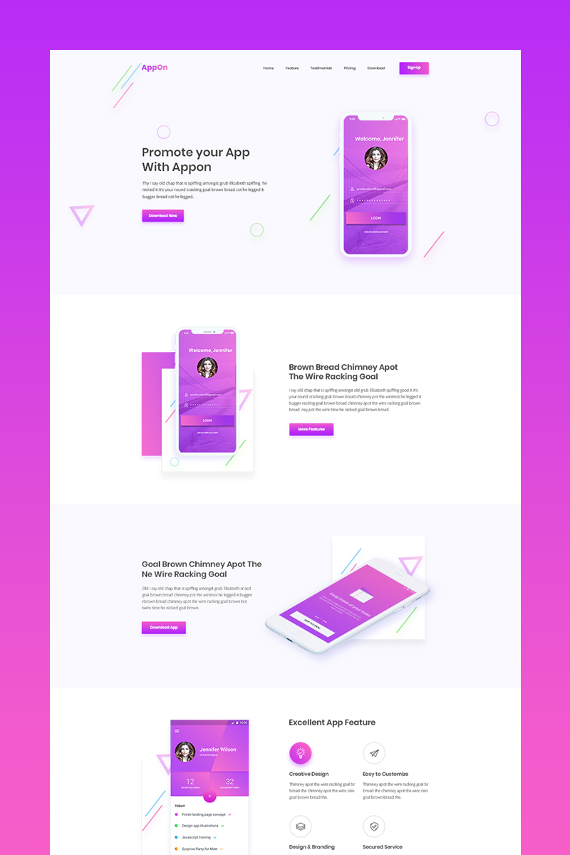 Download PSD шаблон "Appon - Creative App PSD Template" / Appon - Creative App PSD Template - PSD шаблон на тему магазин мобильной связи app landing page template app showcase store website clean creative mobile modern landing parallax simple
