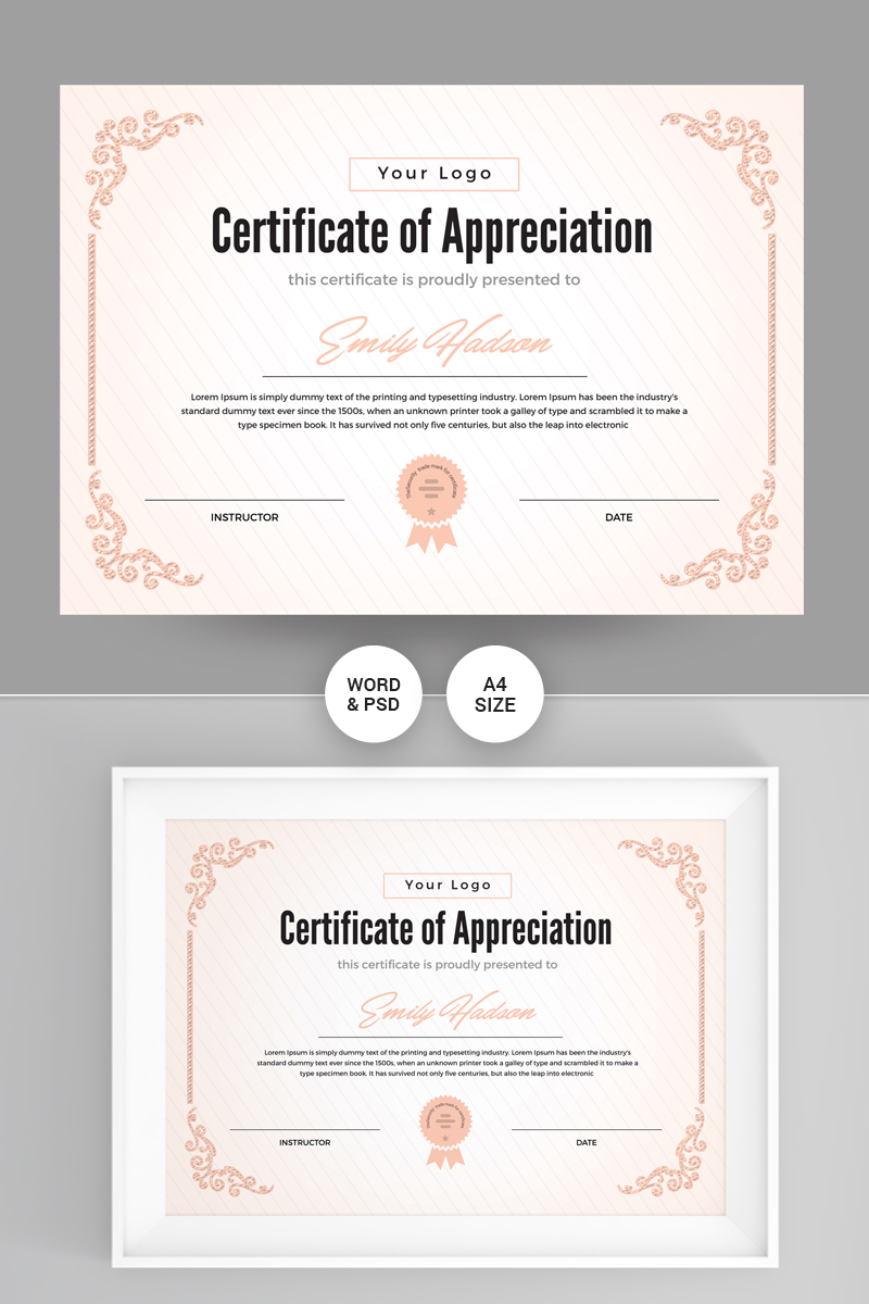 Download Шаблон сертификата "Appreciation Certificate Template" / Appreciation Certificate Template - Шаблон сертификата на тему графика editable completion appreciation achievement certificate custom diploma printed file template graduation word psd pdf clean