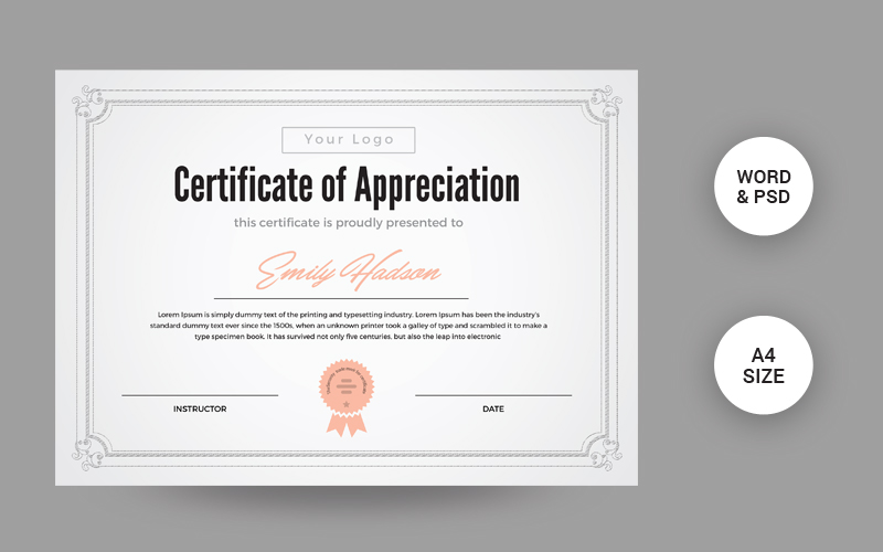 Download Шаблон сертификата "Appreciation Certificate Template" / Appreciation Certificate Template - Шаблон сертификата на тему графика editable,completion,appreciation,achievement,certificate,custom,diploma,printed,file,template,graduation