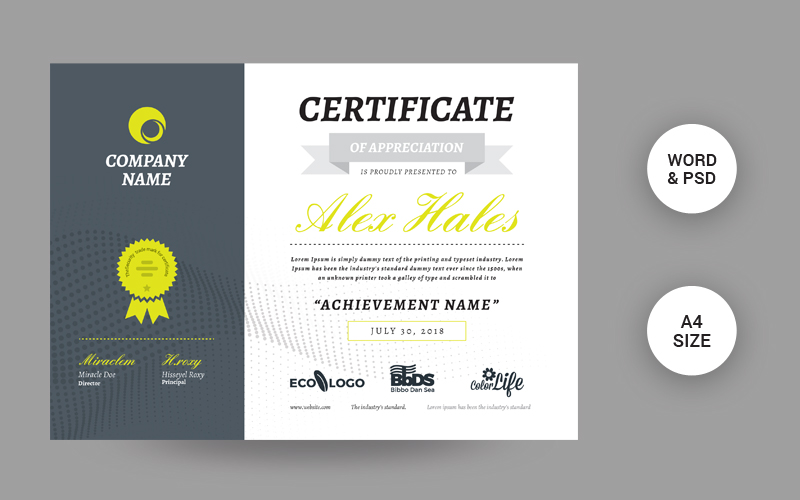 Download Шаблон сертификата "Appreciation Certificate Template" / Appreciation Certificate Template - Шаблон сертификата на тему графика abstract,certificate,achievement,award,awards,black,design,in,graphics,certificate,of,appreciation,clean,corporate,course,creative,cyan,decorative,diploma,elegant