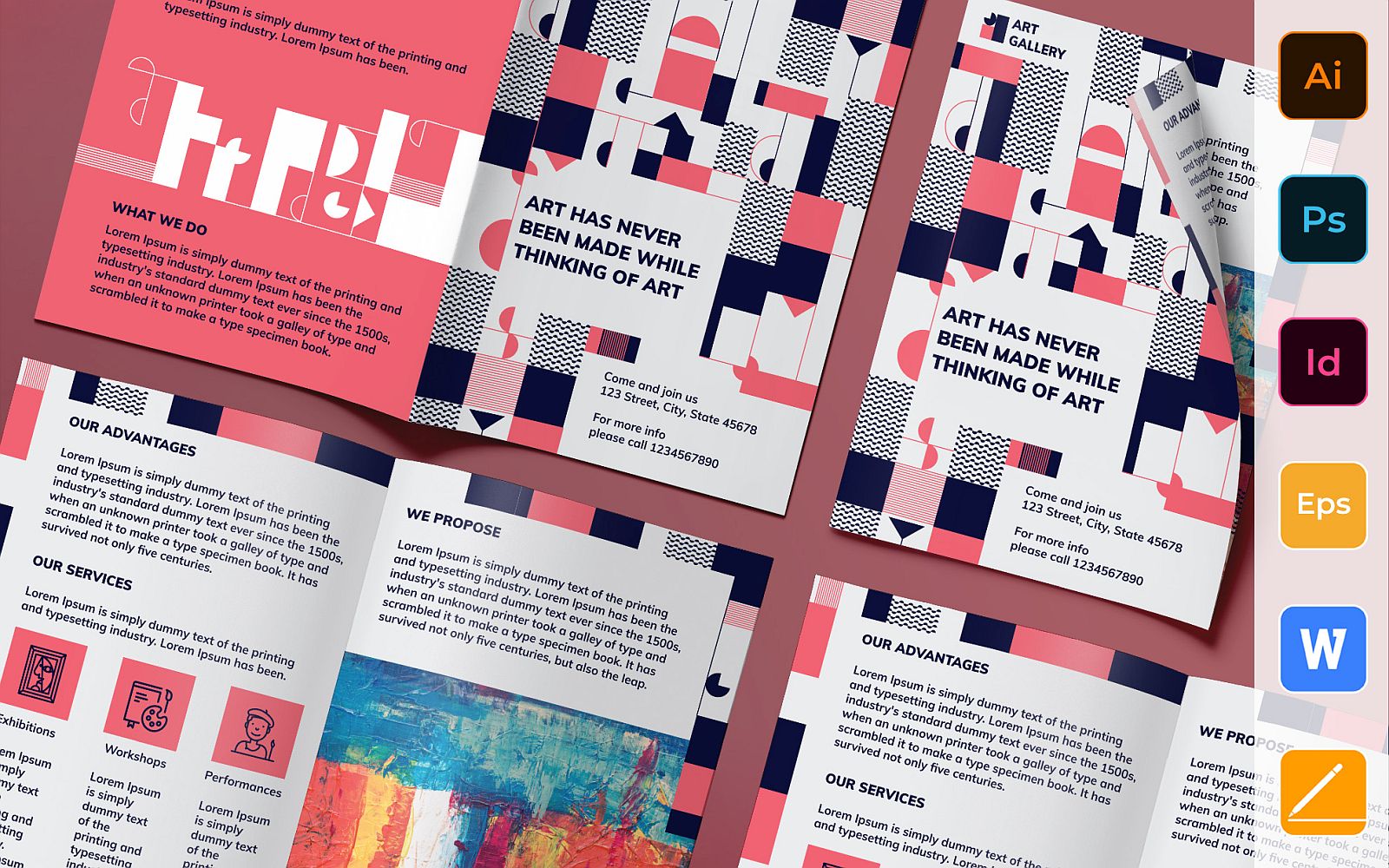 Download Фирменный стиль "Art Gallery Brochure Bifold - Corporate Identity Template" / Art Gallery Brochure Bifold - Corporate Identity Template - Фирменный стиль на тему графика brochure,bifold,template,corporate,company,branding,art,gallery,artist,artwork,painting,exhibition,pink,blue,white