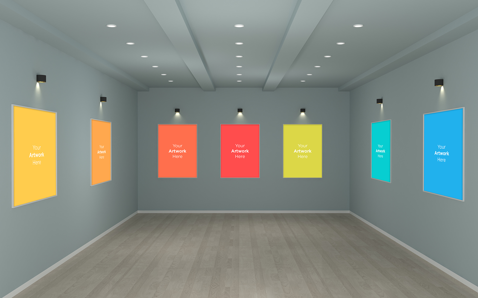 Скриншот - Download Art Gallery Frames with Spot Lights product mockup - Мокап для продукта на тему графика