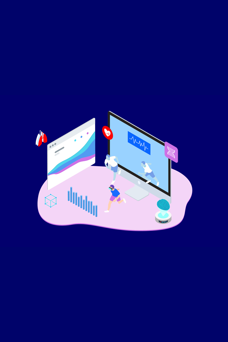 Download Иллюстрация "ARVR Exercise And Sport 4 - Illustration" / ARVR Exercise And Sport 4 - Illustration - Иллюстрация на тему графика isometric illustration blockchain platform finance report chart analysis growth device laptop bussiness strategy people design.