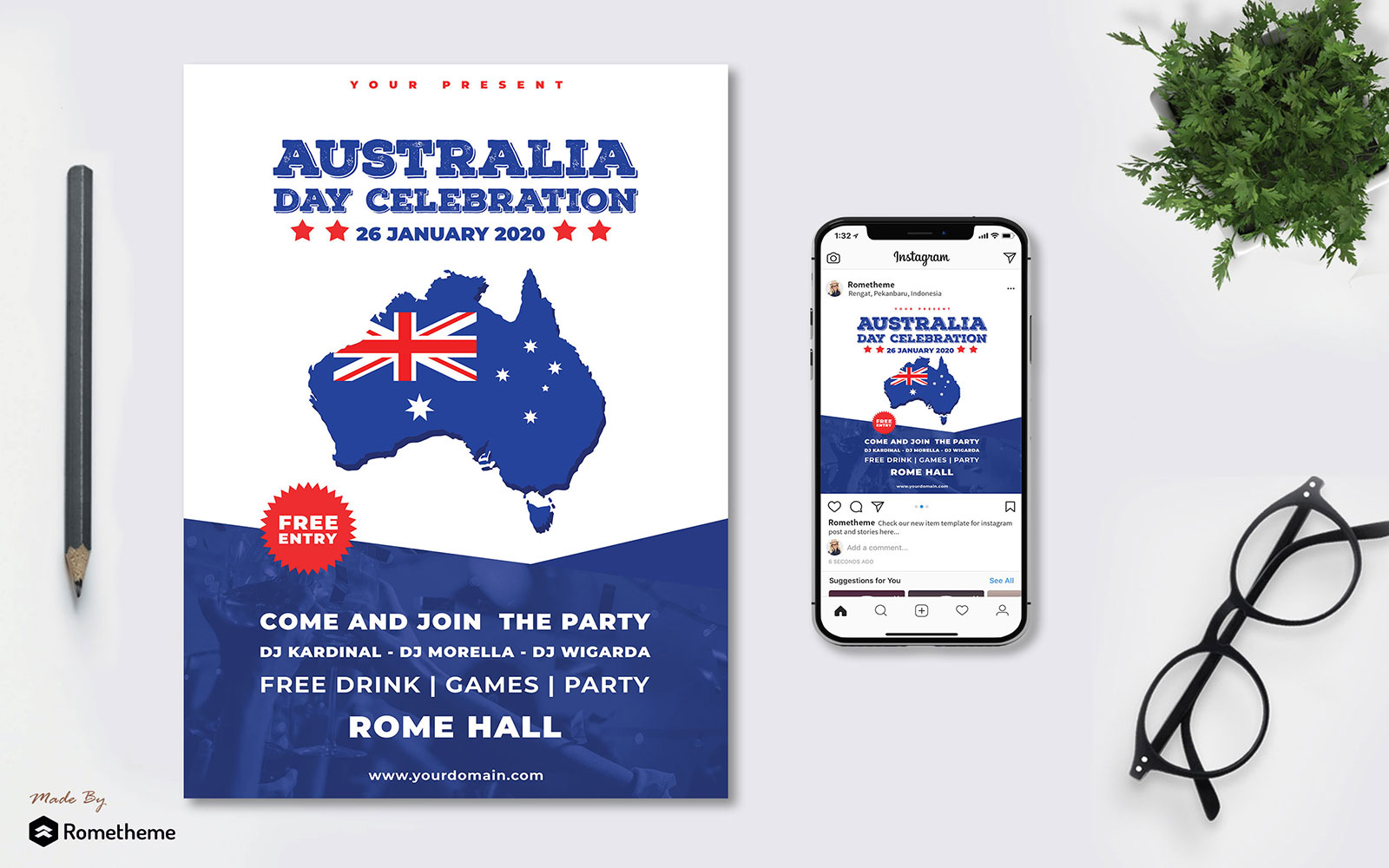 Download Фирменный стиль "Australia Day vol.01 - Flyer TY - Corporate Identity Template" / Australia Day vol.01 - Flyer TY - Corporate Identity Template - Фирменный стиль на тему графика australia,day,event,festival,independence,invitation,flyer,brochure,banner,instagram,post,feed,blue,promotion,business