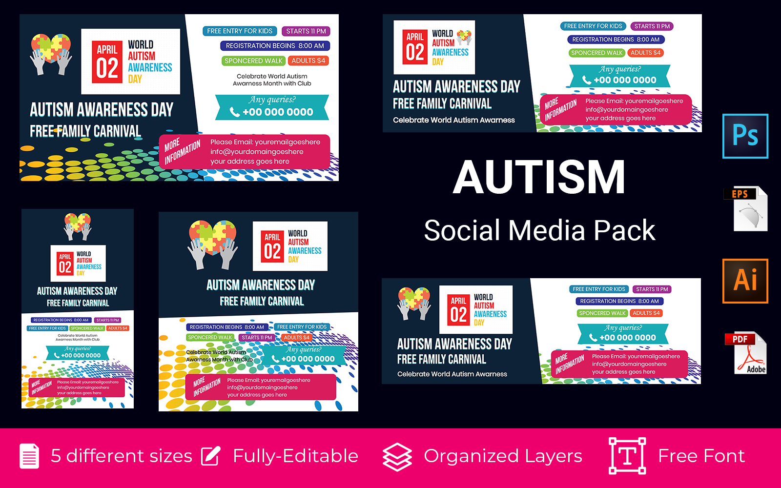 Download Шаблон для соцсетей "Autism Awareness Day Social Media Banner" / Autism Awareness Day Social Media Banner - Шаблон для соцсетей на тему графика adroll,animated,animated banner,autism,banner pack,banner set,banners,business,care,caring,coupon,deal,discount,flat,flat design,gif,gif banner,google,kid,kids