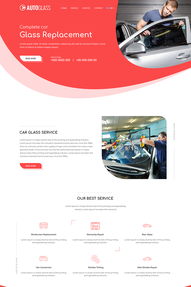 Download PSD шаблон "Autoglass - Glass Repair PSD Template" / Autoglass - Glass Repair PSD Template - PSD шаблон на тему графика glass repair maintenance template theme psd photosop