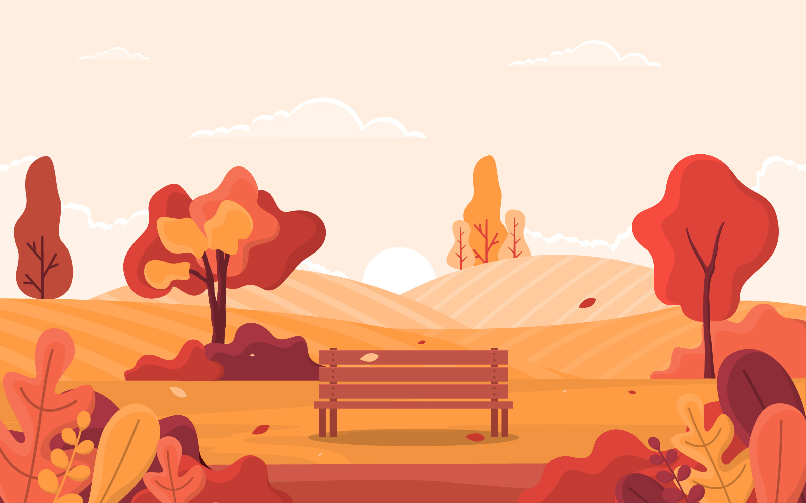 Download Иллюстрация "Autumn Golden Tree - Illustration" / Autumn Golden Tree - Illustration - Иллюстрация на тему графика autumn,fall,season,tree,golden,yellow,hill,panoramic,landscape,vector,illustration,background,scene,garden,environment,bright,forest,park,city,green