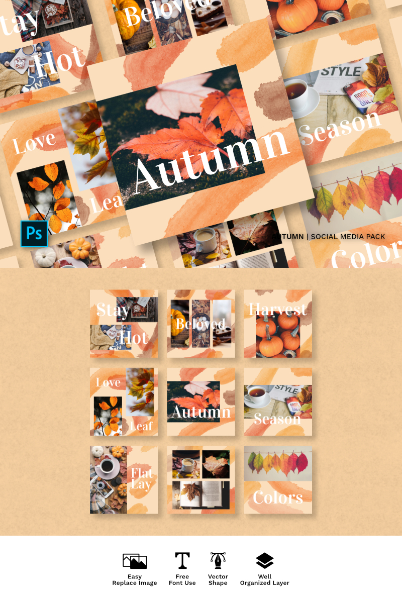 Download Шаблон для соцсетей "Autumn Pack Social Media Template" / Autumn Pack Social Media Template - Шаблон для соцсетей на тему графика instagram facebook twitter banner template sale media social background design vector fashion promotion stories instagramtemplates post story