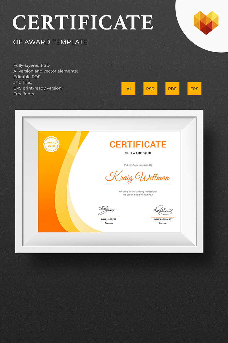 Download Шаблон сертификата "Award Certificate Template" / Award Certificate Template - Шаблон сертификата на тему графика appreciation graduation membership attemdance accredited certification recognition printed award graphic psd identity corporate customizable a4 editable diploma standard