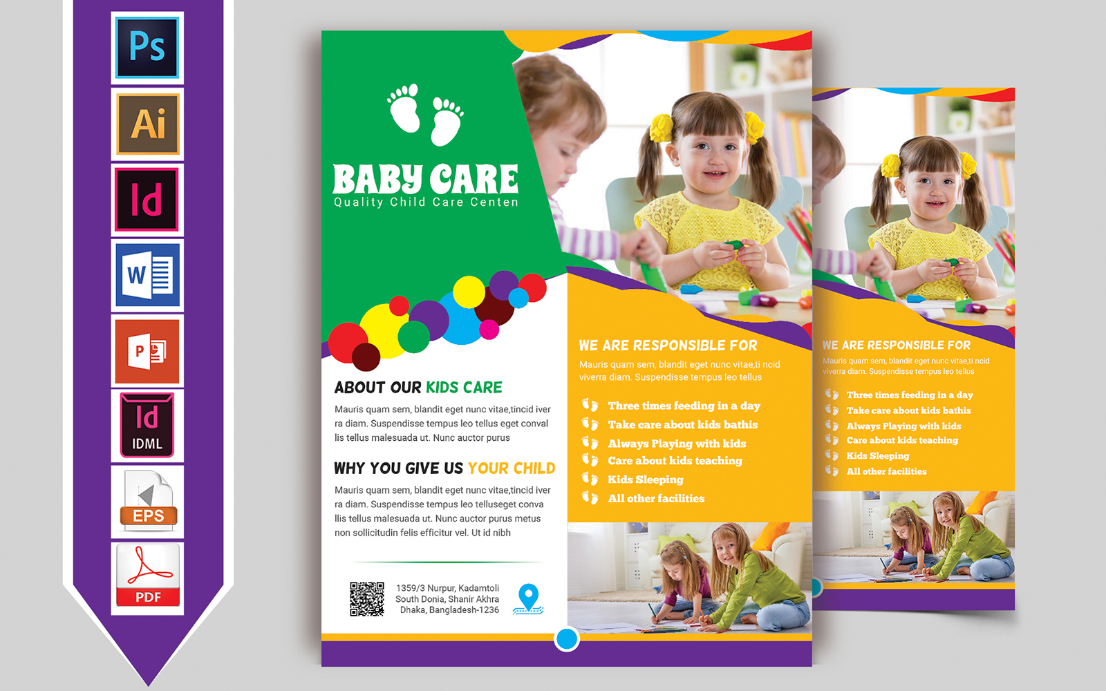Download Фирменный стиль "Baby Care Flyer Vol-03 - Corporate Identity Template" / Baby Care Flyer Vol-03 - Corporate Identity Template - Фирменный стиль baby,child,care,flyer,psd,eps,indesign,ms,word,powerpoint,idml,vector,poster,pdf,print,template,ready,dl,rack,card