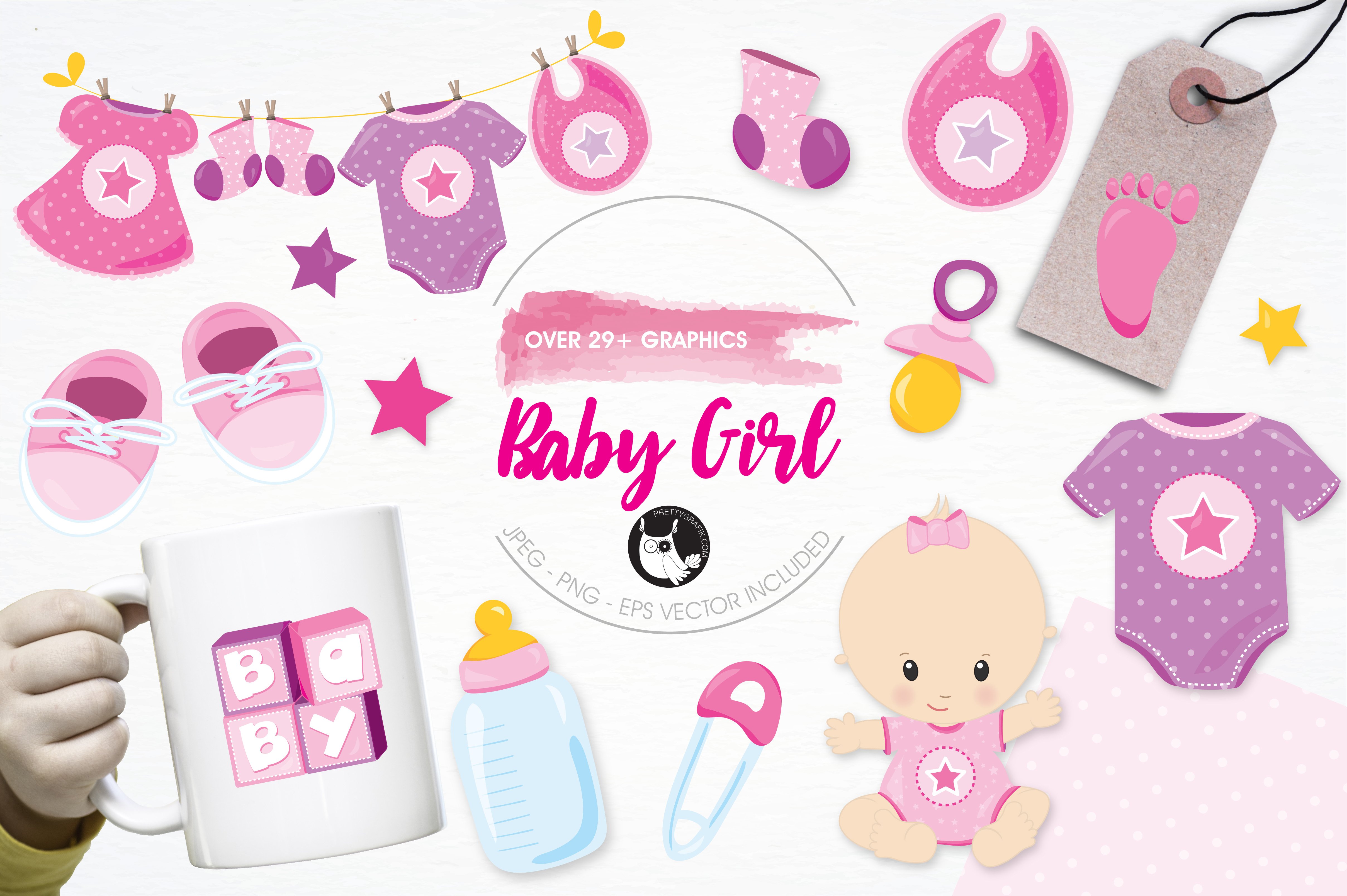 Download Vector "Baby girl illustration pack - Vector Image" / Baby girl illustration pack - Vector Image - Vector на тему графика illustration,vector,graphics,clipart,clip art,baby,bottle,icons,girl,sock,foot,eps,prettygrafik,pacifier,baby shower,bib,clothing line,baby shoes,clothes pin,foot print