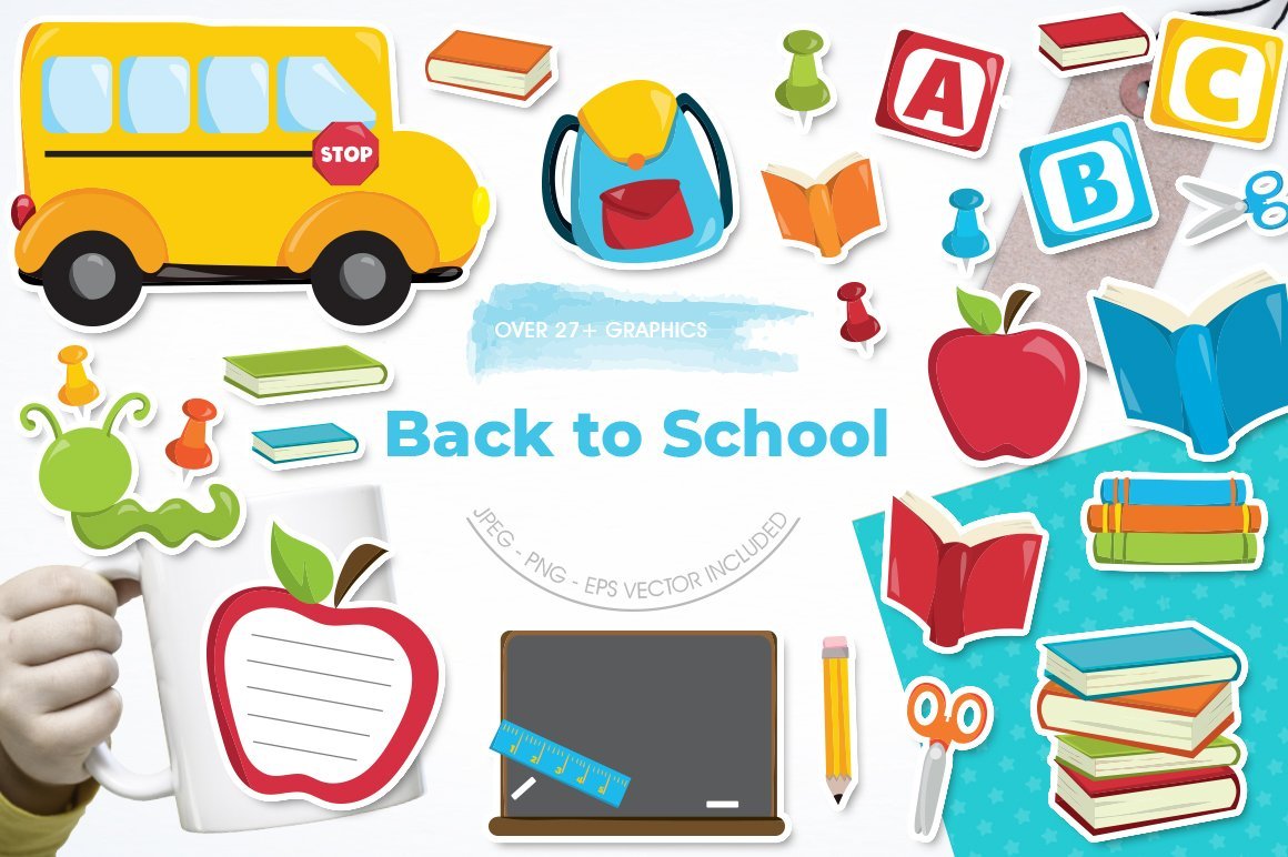 Download Vector "Back to School - Vector Image" / Back to School - Vector Image - Vector на тему графика scrapbook,scrapbooking,clipart,clip art,apple,books,back to school,school bus,scissors,prettygrafik,bags,pencils,vector art,bookworm,school supplies