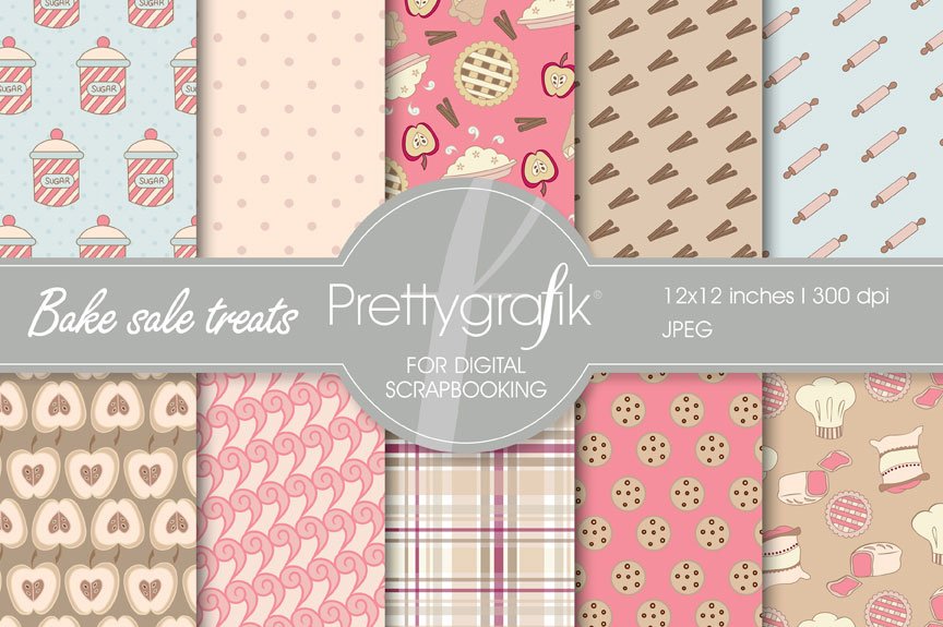 Download Vector "Bake Sale Treats Digital Paper - Vector Image" / Bake Sale Treats Digital Paper - Vector Image - Vector на тему графика scrapbooking,baking,apple,patterns,cookies,digital papers,digital art,digital scrapbooking