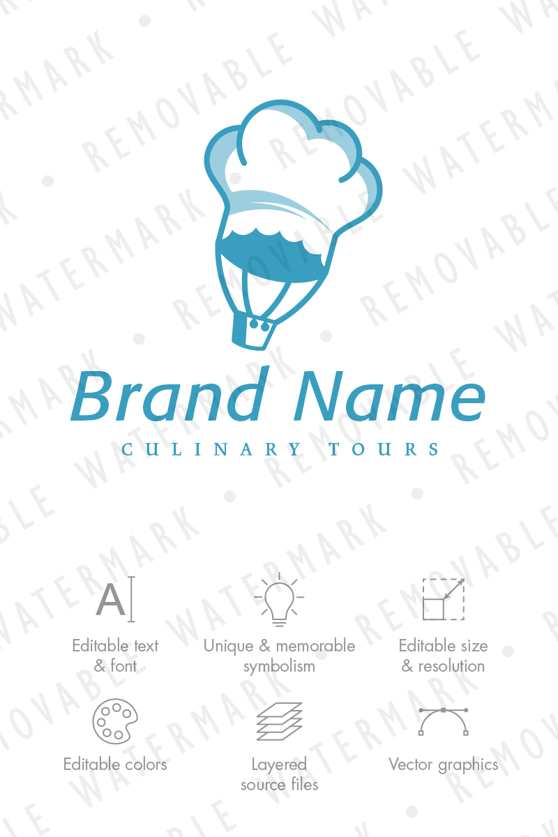 Download Шаблон логотипа "Balloon Chef Logo Template" / Balloon Chef Logo Template - Шаблон логотипа на тему графика travel,chef,hat,cooking,air,balloon,sky,adventure,tour,vacation,culinary,flight,kitchen,logo,design,template,food,restaurant,event,cook