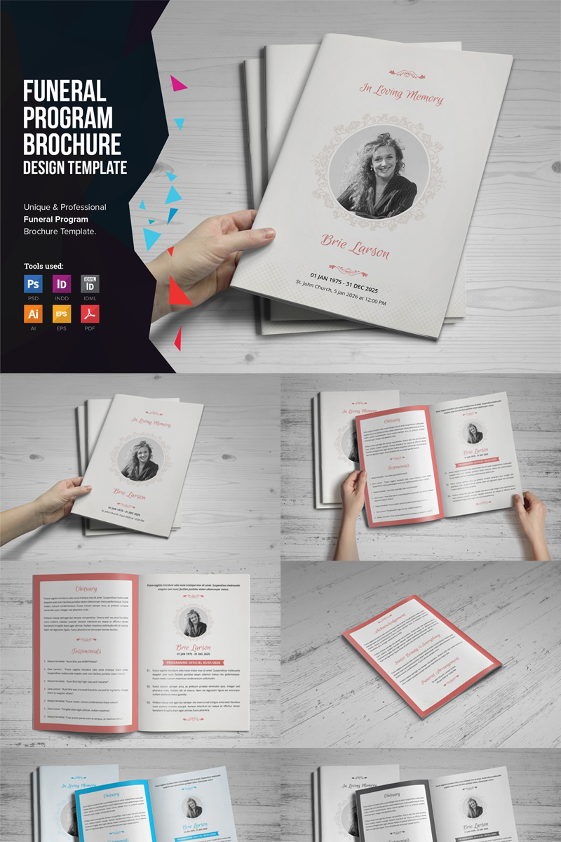 Download Фирменный стиль "Barish - Funeral Program A5 Brochure - Corporate Identity Template" / Barish - Funeral Program A5 Brochure - Corporate Identity Template - Фирменный стиль на тему графика funeral program brochure trifold leaflet flyer template memorial obituary order-of-service celebration-of-life service printables prospectus newsletter magazine education real-estate travel m