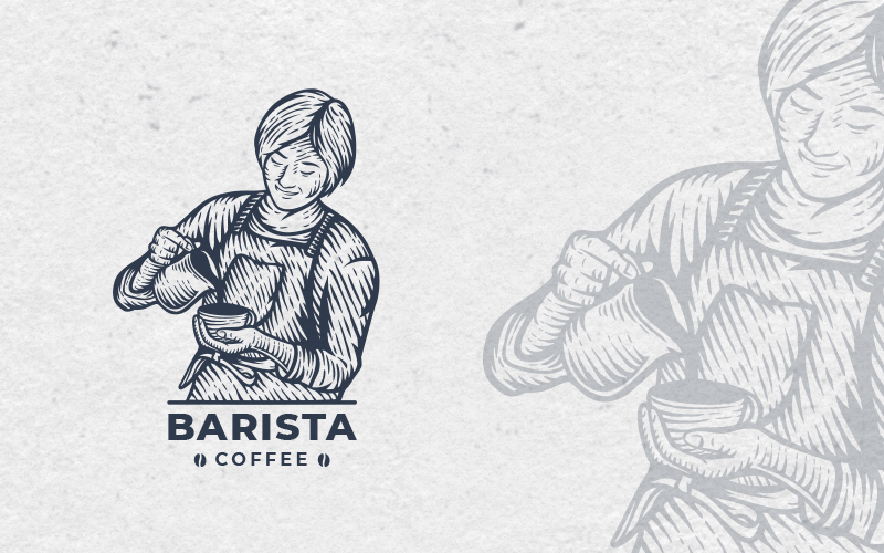 Download Шаблон логотипа "Barista Coffee Logo Template" / Barista Coffee Logo Template - Шаблон логотипа на тему графика logo,vintage logo,minimalist logo,unique,simple,clean,modern,classic,retro,engraving,hand drawn,mascot,symbol,illustration,creative,business,company,agency,coffee,barista