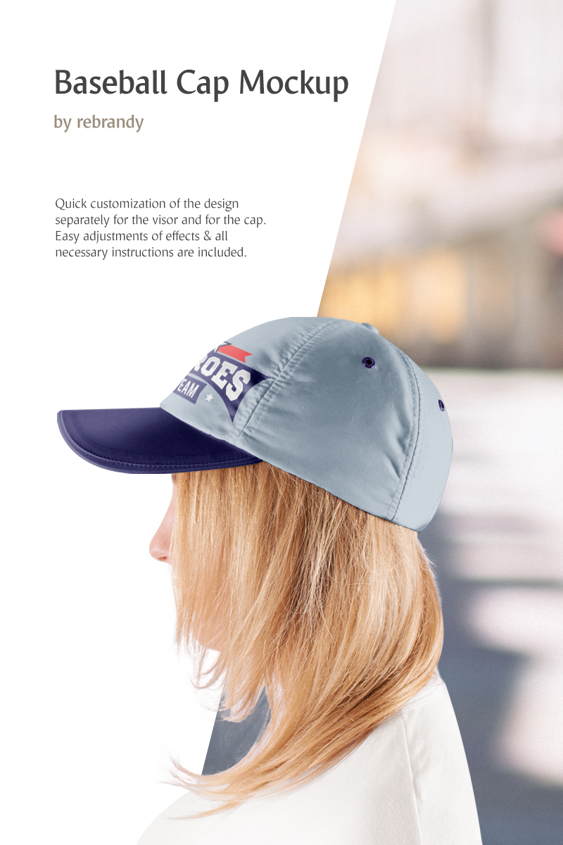 Download Мокап для продукта "Baseball Cap product mockup" / Baseball Cap product mockup - Мокап для продукта на тему графика baseball cap snapback visor mockup hat snap back basebal uniform mock up headwear person sport woman base ball cloth crown