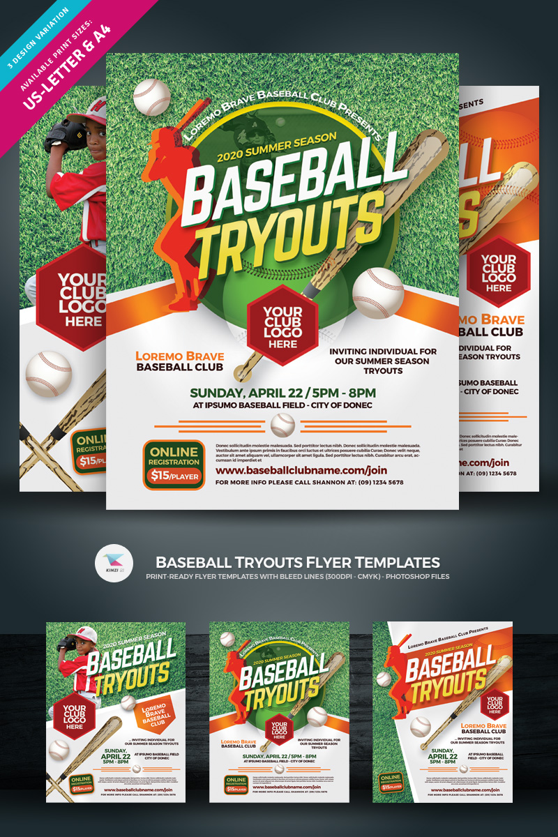 Download Фирменный стиль "Baseball Tryouts Flyer - Corporate Identity Template" / Baseball Tryouts Flyer - Corporate Identity Template - Фирменный стиль на тему графика ad baseball camp championship clinic final flyer game kids leaflet league magazine mlb player poster softball sport team tournament tryout