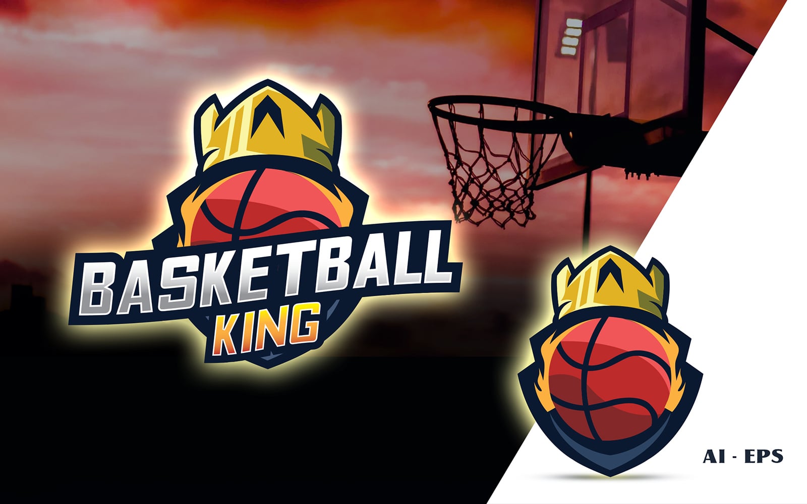 Download Шаблон логотипа "Basketball King Logo Template" / Basketball King Logo Template - Шаблон логотипа на тему графика basketball,badges emblem,esport,game,team,squad,logotemplate,2021,2022,2023,modern,bold,tournament
