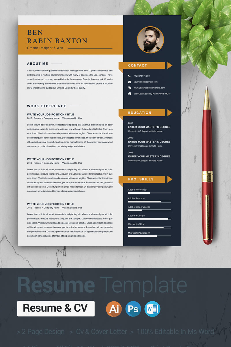 Download Резюме "Baxton Resume Template" / Baxton Resume Template - Резюме на тему графика 2 page a4 clean cv design elegant resume female feminine infographic letter minimalist modern portfolio professional indesign minimal pages
