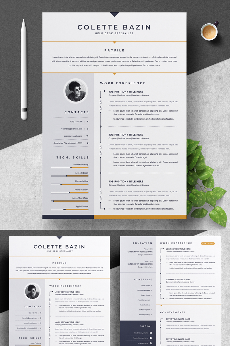 Download Резюме "Bazin Resume Template" / Bazin Resume Template - Резюме на тему графика 1 page resume 2 3 apple pages cover letter illustrator eps mac pages microsoft word photoshop psd professional cv for