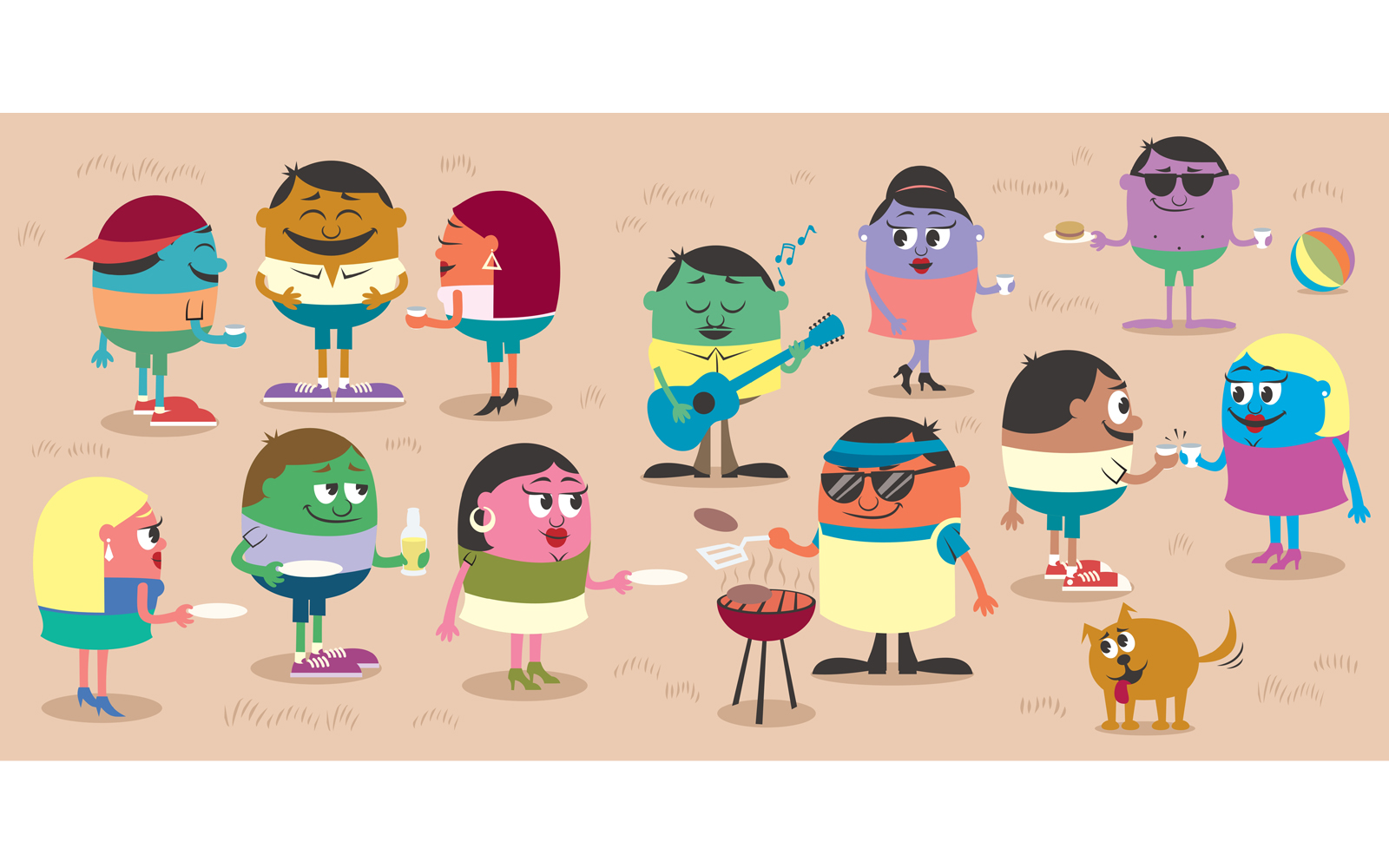 Download Иллюстрация "BBQ - Illustration" / BBQ - Illustration - Иллюстрация на тему графика bbq,barbecue,barbeque,grill,cooking,food,drink,party,outdoors,outside,celebration,birthday,backyard,summer,company,people,group,young,friends,man