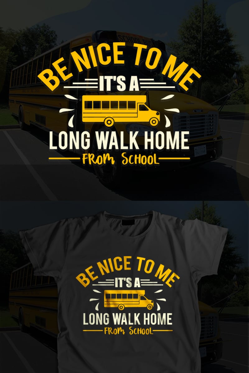 Download T-shirt Design "Be nice to me it's a long walk home from school - T-shirt Design" / Be nice to me it's a long walk home from school - T-shirt Design - T-shirt Design на тему графика be nice it's a long walk home from school nice it's a long walk svg cut file; g bus driver