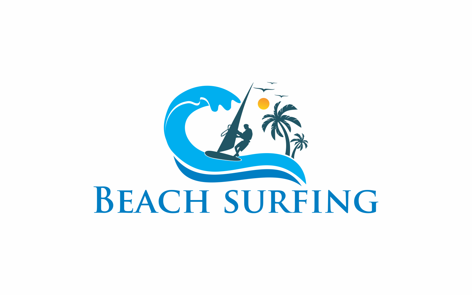 Download Шаблон логотипа "Beach surfing Logo Template" / Beach surfing Logo Template - Шаблон логотипа на тему графика ocean,beach,surf,surfing,sport,travel,surfboard,vacation,surfer,holiday,fun,water,blue,palm,background,sunset,tourism,island,hawaii,sunshine