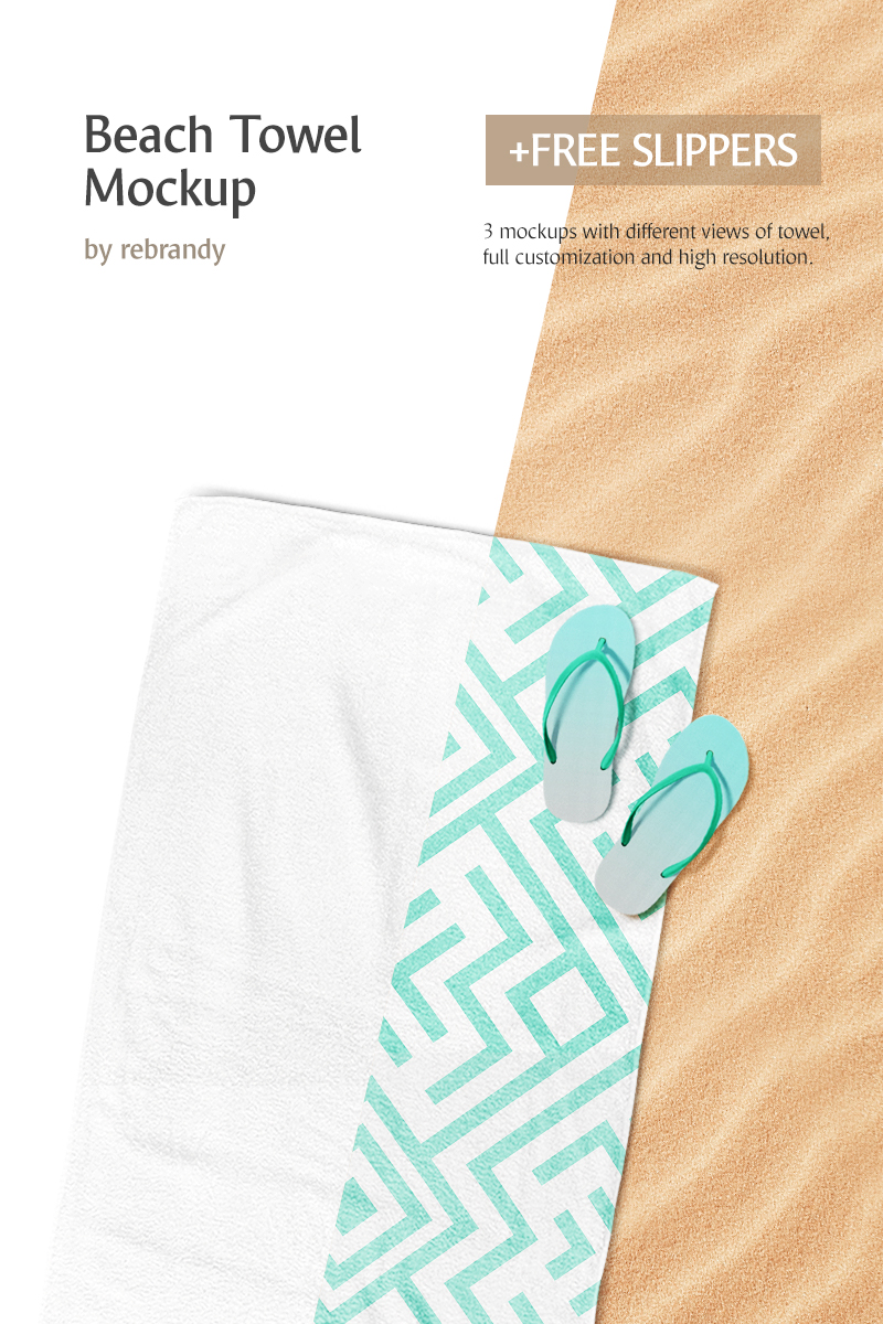 Download Мокап для продукта "Beach Towel product mockup" / Beach Towel product mockup - Мокап для продукта на тему графика psd mockup template beach towel jack-towel slippers swimming pool bath bathroom kitchen home gym microfiber textile spa accessory bathtub mokcup