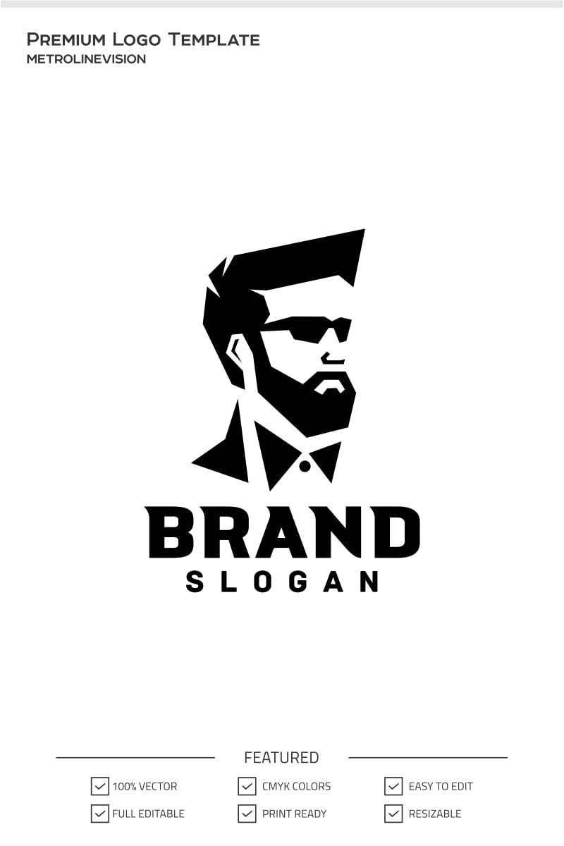 Download Шаблон логотипа для барбершопа / Beard Logo Template - Шаблон логотипа на тему графика fashion style stylist bald beard logo big man black bold book business clear creative face geek glasses head human nerd,gentleman,int,smoking,beard,sunglass,stylist,style,unique,minimal,cool,