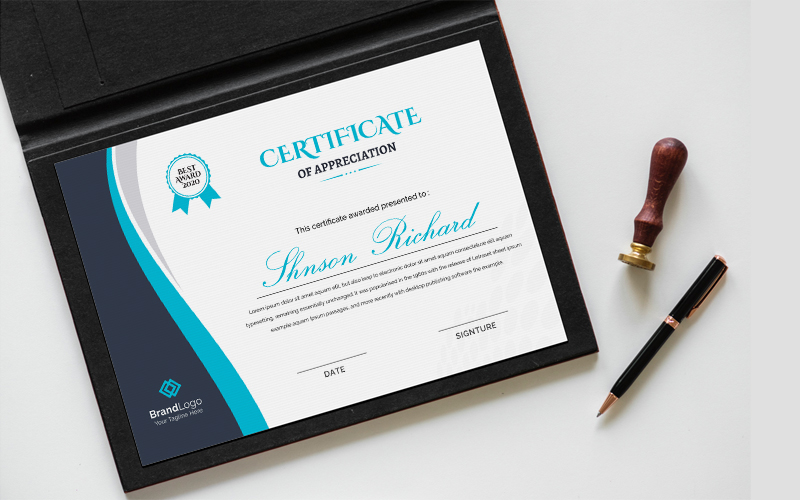 Download Шаблон сертификата "Beautiful Clean Certificate Template" / Beautiful Clean Certificate Template - Шаблон сертификата на тему графика beautiful,clean,certificate,diploma,award,gift,waves,wave,design,layout,elegant,frame,paper,template,achievement,appreciation,business,background,bank,college