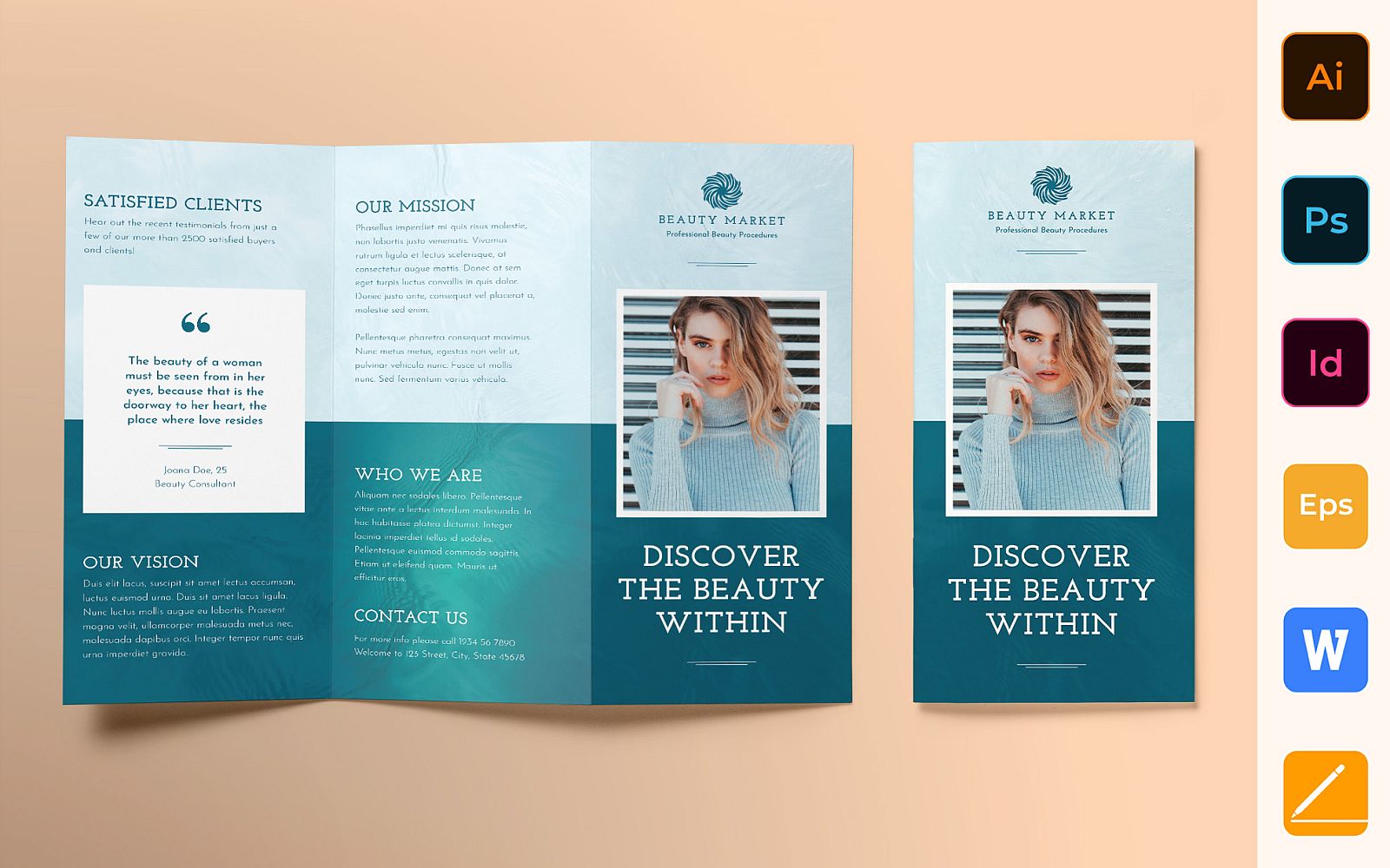 Download Фирменный стиль "Beauty Market Brochure Trifold - Corporate Identity Template" / Beauty Market Brochure Trifold - Corporate Identity Template - Фирменный стиль на тему графика brochure,trifold,template,corporate,company,branding,beauty,market,hair,nails,cosmetics,skin,services,white,blue