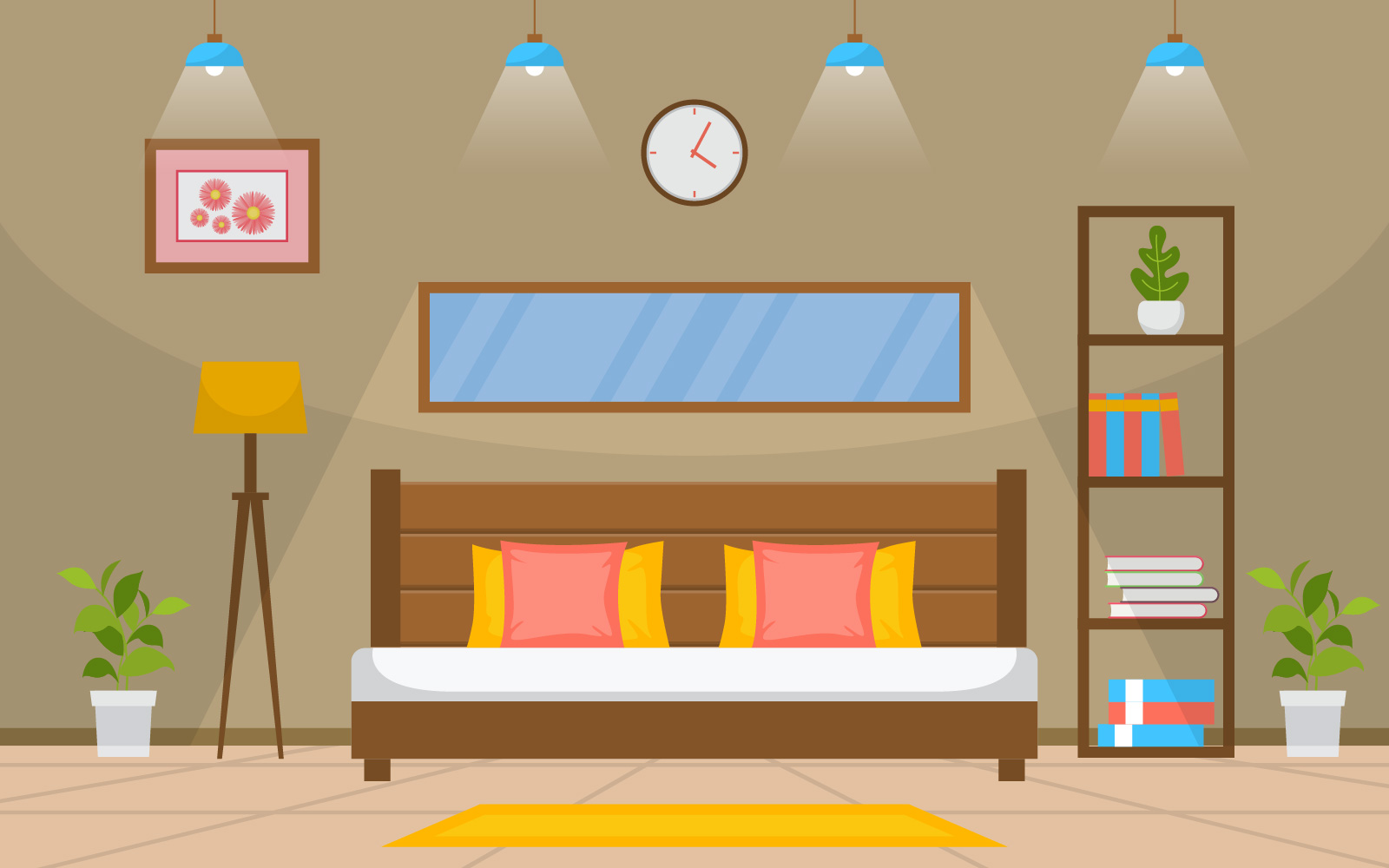 Download Иллюстрация "Bedroom Modern Interior - Illustration" / Bedroom Modern Interior - Illustration - Иллюстрация на тему графика bedroom,sleeping,room,bed,interior,design,modern,house,illustration,vector,concept,sleep,indoor,comfortable,furniture,bedstead,rest,blanket,hanging,lamp