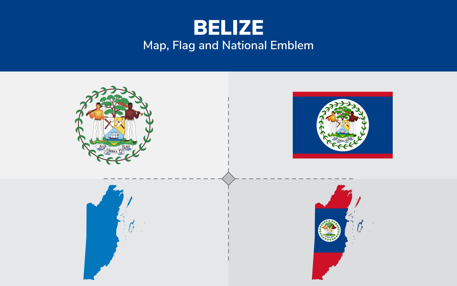 Download Иллюстрация "Belize Map, Flag and National Emblem - Illustration" / Belize Map, Flag and National Emblem - Illustration - Иллюстрация на тему графика continents,countries,map,political map,traveling,vector,emblem,national,flag,coat,arms,country,symbol,nations,state,sign,nation,badge,symbolic object,europe