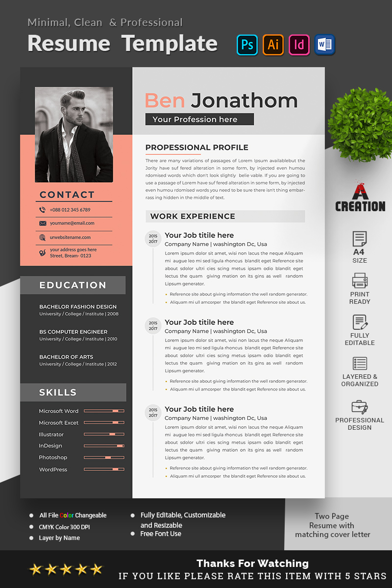 Download Резюме "Ben Jonathon Editable Resume Template" / Ben Jonathon Editable Resume Template - Резюме на тему графика resume a4 bundle classic clean cv cover letter job minimalist download layout template word simple application student objective 2page.