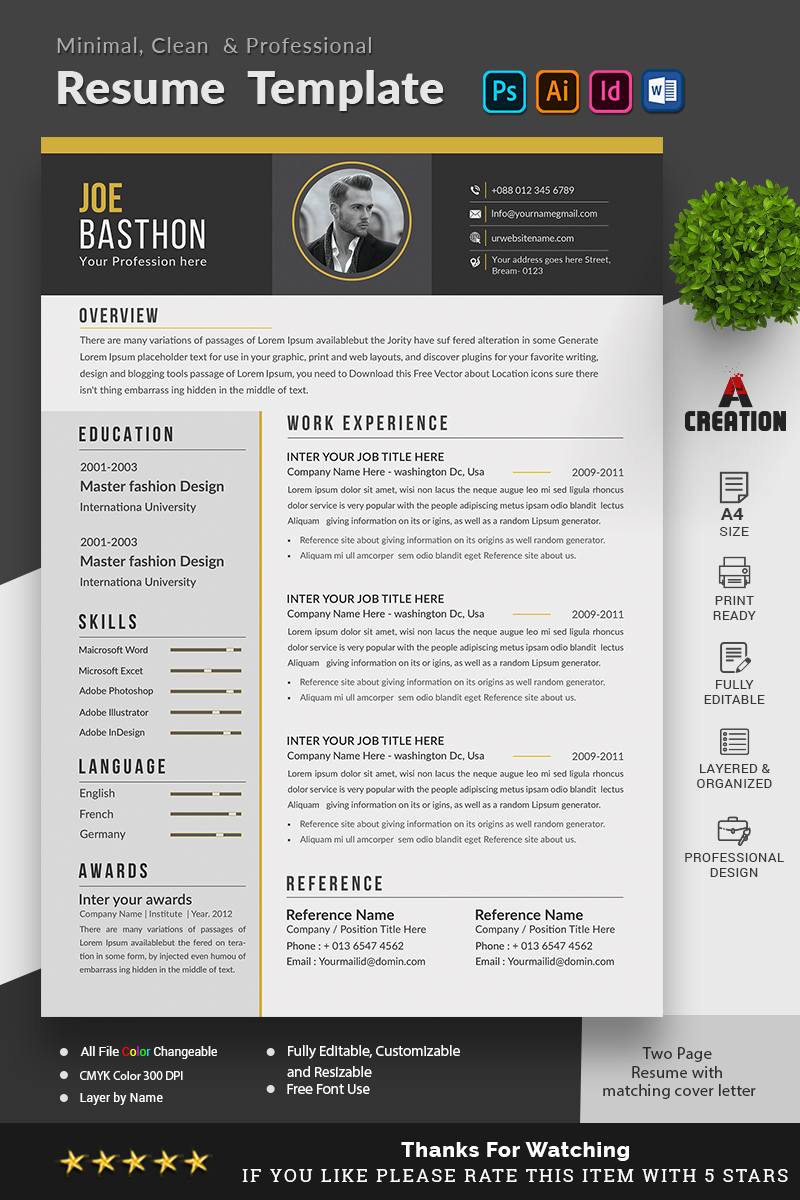 Download Резюме "Ben Jonathon - Graphic Designer Resume Template" / Ben Jonathon - Graphic Designer Resume Template - Резюме на тему графика 2 page resume a4 bundle classic clean cv cover letter job minimalist download layout template word simple application student objective