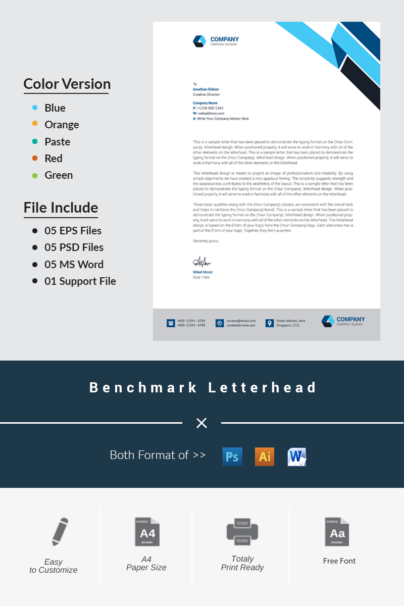 Download Фирменный стиль "Benchmark Letterhead - Corporate Identity Template" / Benchmark Letterhead - Corporate Identity Template - Фирменный стиль на тему графика black blue both side design business card letterhead creative flyer graphic green landscape letterhead design logo magazine modern official print