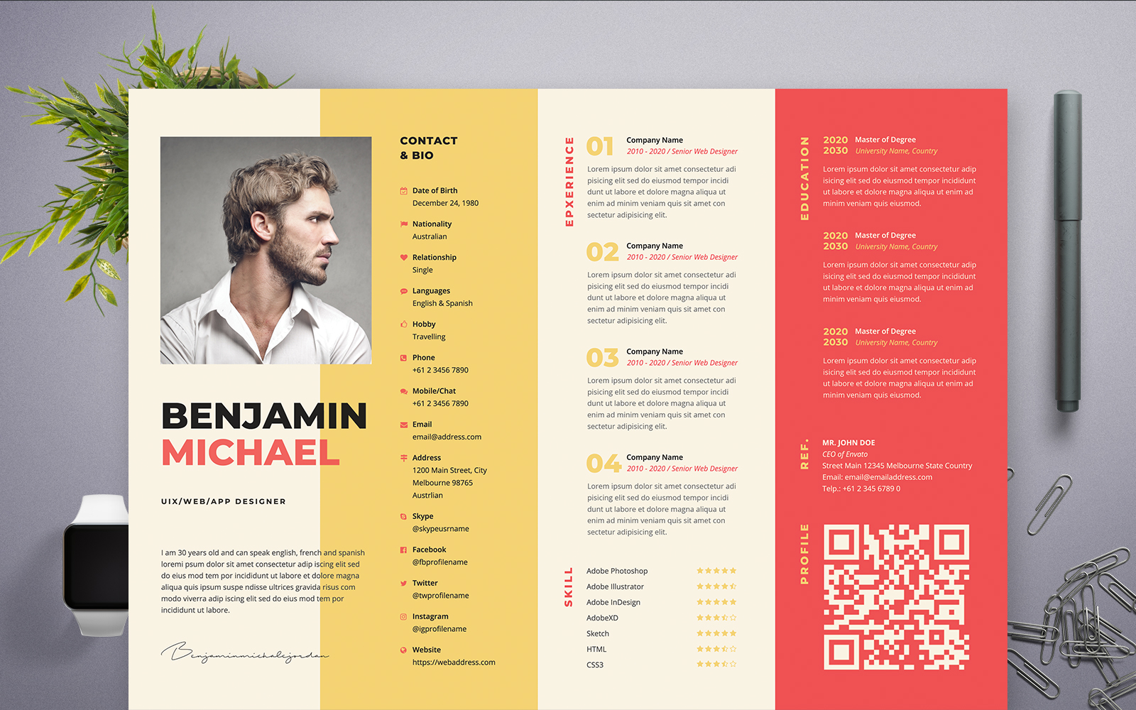 Download Резюме "Benjamin Micael | Professional and Clean Resume Template" / Benjamin Micael | Professional and Clean Resume Template - Резюме на тему графика professional,resume,cv,clean,business,corporate,documents,paper,curriculum,vitae,job,works,fresh,graduate