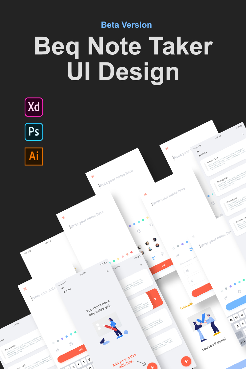 Download UI элементы "Beq Note Taker UI Design " / Beq Note Taker UI Design - UI элементы на тему графика ui design ux adobe illustrator photoshop xd web app software flat modern cute