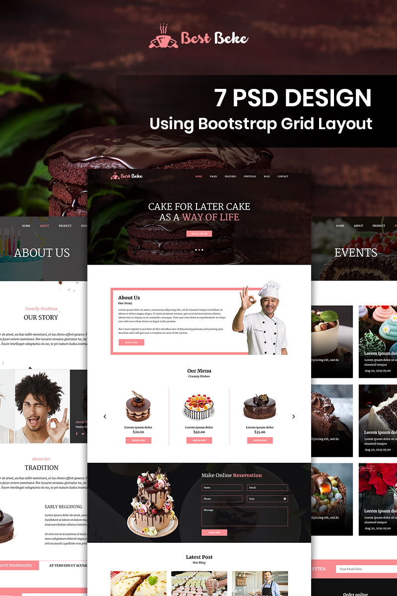 Download PSD шаблон "Best Bake - Bakery PSD Template" / Best Bake - Bakery PSD Template - PSD шаблон на тему хлебобулочные изделия bakery bake food cake pudding theme template psd photoshop
