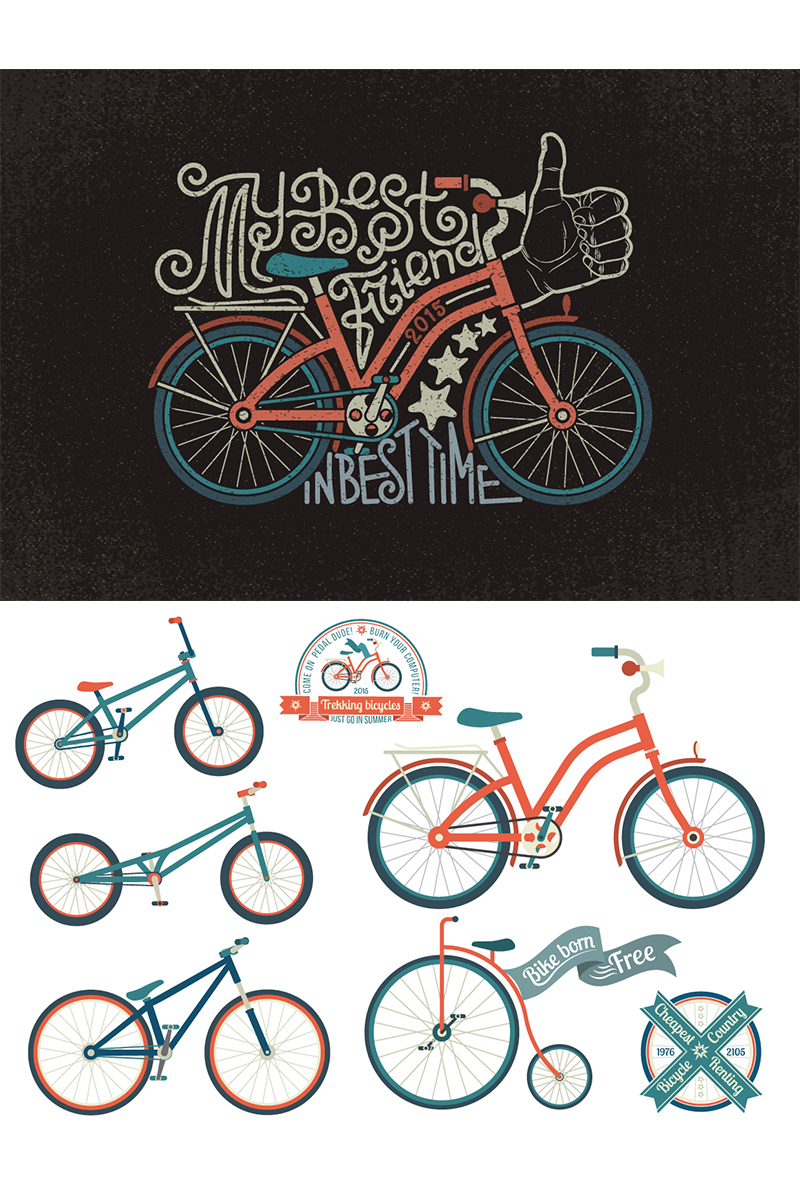 Download Иллюстрация "Bicycles - Illustration" / Bicycles - Illustration - Иллюстрация на тему графика emblem badge label illustration banner professional poster stamp ribbon symbol