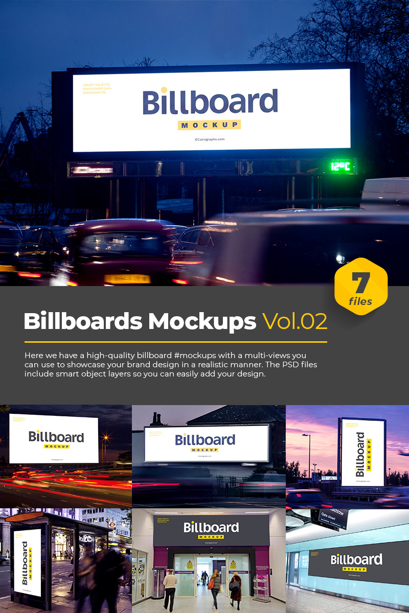 Download Мокап для продукта "Billboards Vol.2 product mockup" / Billboards Vol.2 product mockup - Мокап для продукта на тему графика ads advertisement advertising mockup banner billboard business campaign company display editable mock-up outdoor photorealistic showcase sky streets