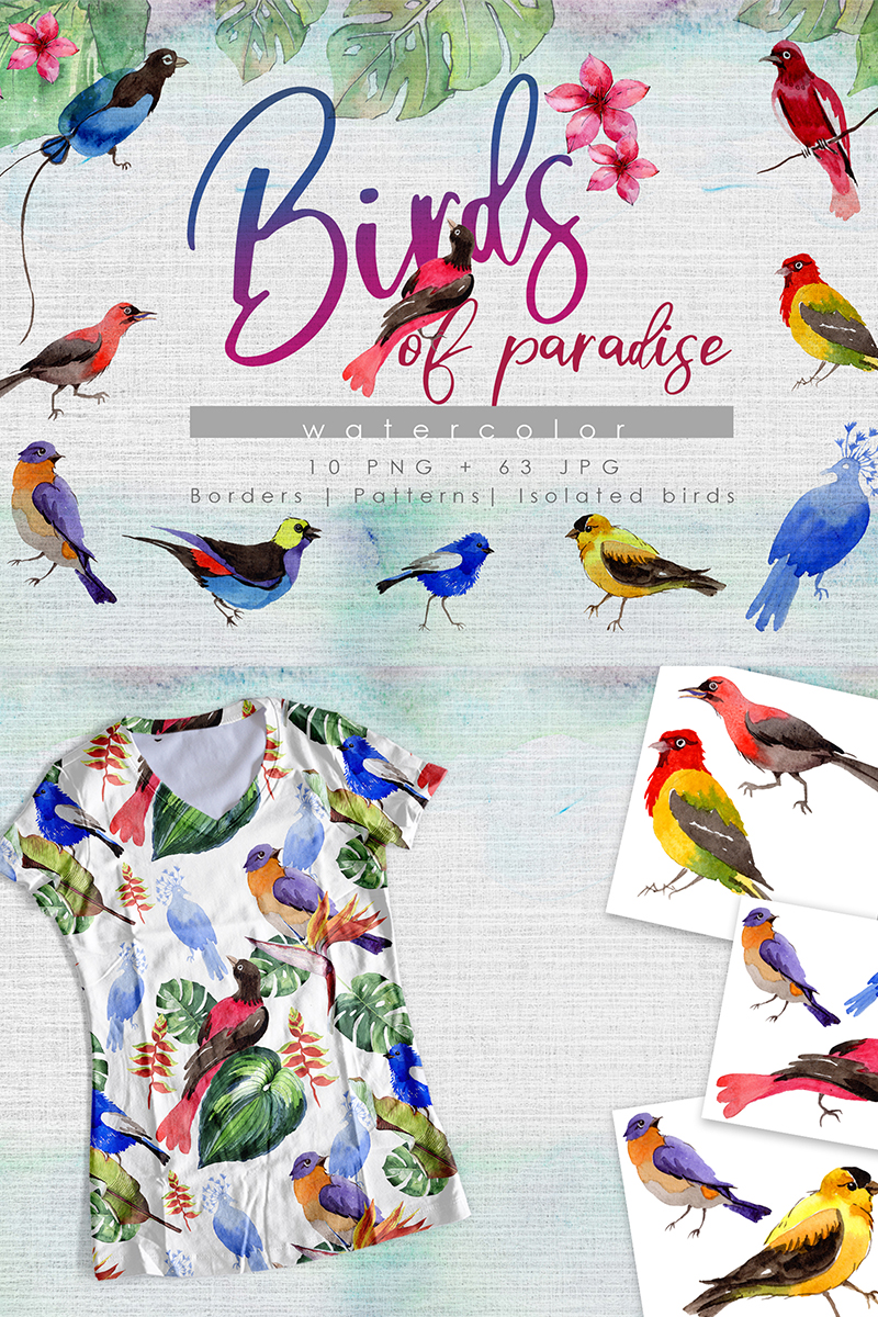 Download Иллюстрация "Birds Of Paradise PNG Watercolor Creative Set - Illustration" / Birds Of Paradise PNG Watercolor Creative Set - Illustration - Иллюстрация на тему графика watercolor illustration bird flight parrot flying flock wings fly wild freedom soar soaring sky paradise wildlife feather drawing background colorful