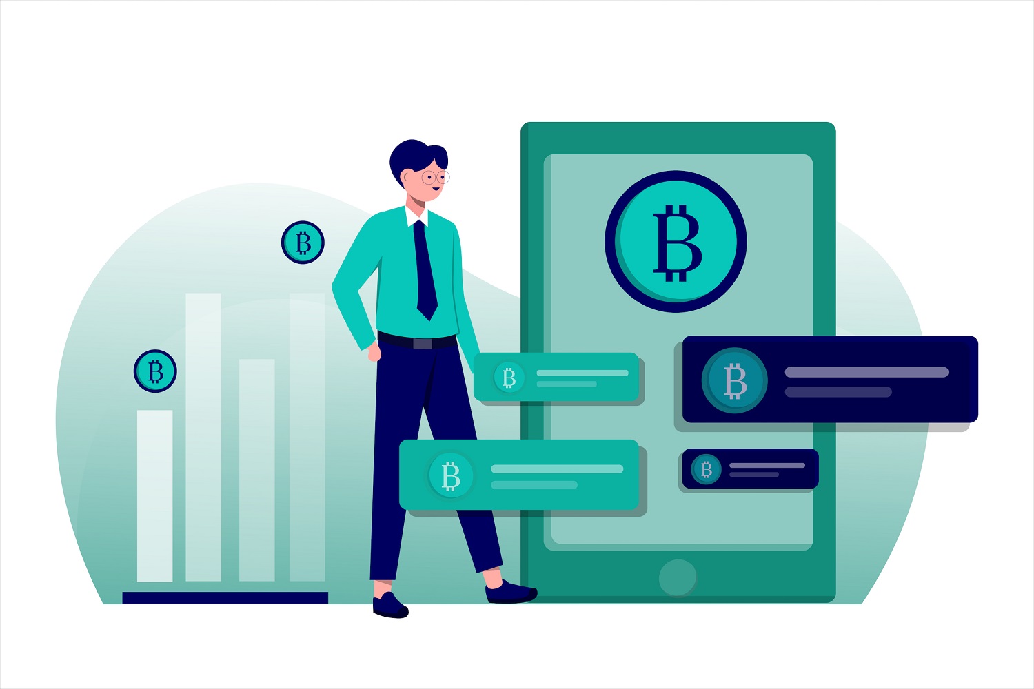 Download Vector "Bitcoin Businessman Flat Illustration - Vector Image" / Bitcoin Businessman Flat Illustration - Vector Image - Vector на тему графика flat,vector,illustration,design,graphic,bitcoin,virtual,finance,money,cryptocurrency,business,coin,currency,crypto,bank
