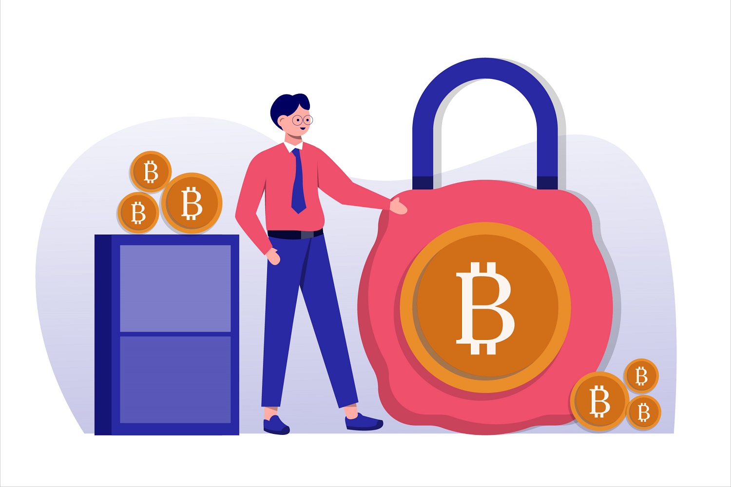 Download Vector "Bitcoin Security Flat Illustration - Vector Image" / Bitcoin Security Flat Illustration - Vector Image - Vector на тему графика flat,vector,illustration,design,graphic,bitcoin,virtual,finance,money,cryptocurrency,business,coin,currency,crypto,bank