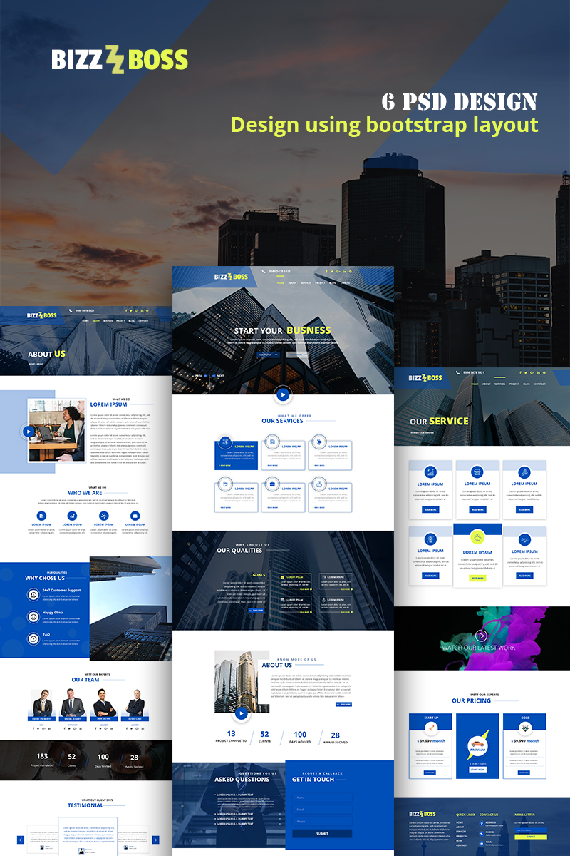Download PSD шаблон "BizzBoss - Multipurpose Corporate PSD Template" / BizzBoss - Multipurpose Corporate PSD Template - PSD шаблон на тему бизнес и услуги business website agency corporate company shop creative consultation modern elegant multipurpose portfolio ecommerce finance blog services template theme psd photoshop