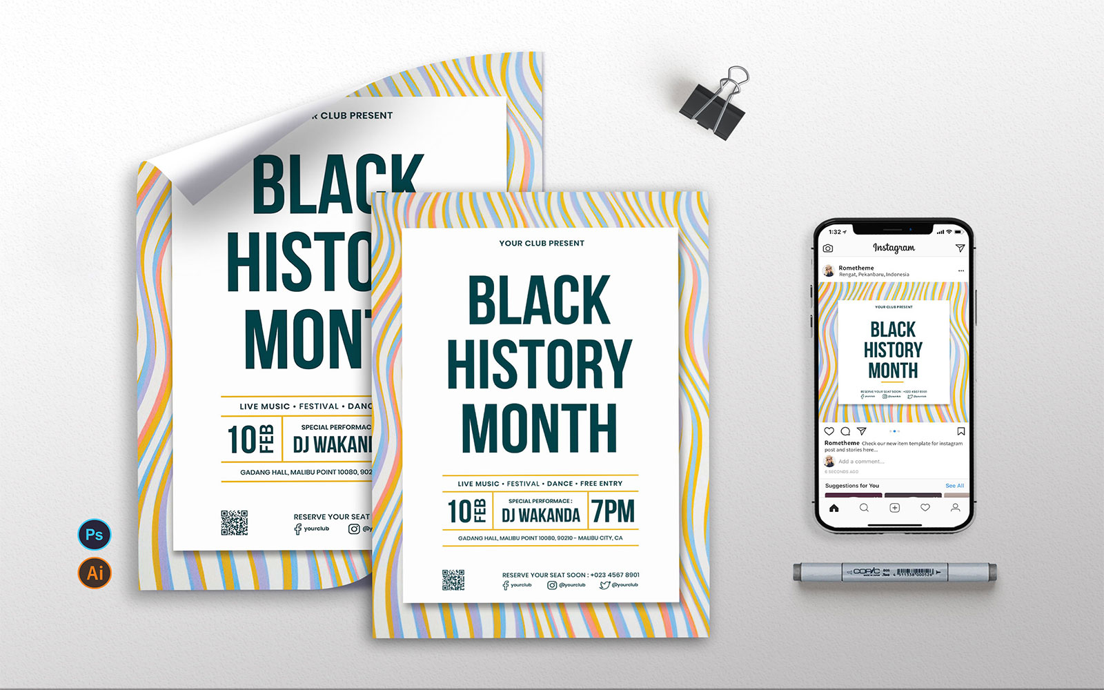 Download Фирменный стиль "Black History Month vol.2 - Flyer RB - Corporate Identity Template" / Black History Month vol.2 - Flyer RB - Corporate Identity Template - Фирменный стиль на тему графика black history month,event,template,black,print,clean,modern,history month,flyer,poster,instagram,psd,ai