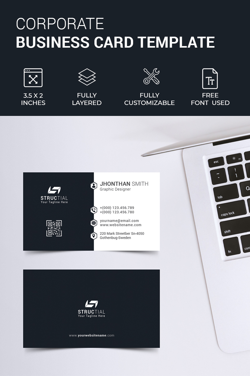 Download Фирменный стиль "Black & White Minimal Business Card - Corporate Identity Template" / Black & White Minimal Business Card - Corporate Identity Template - Фирменный стиль на тему графика business card clean unique corporate creative design horizontal professional psd qr code stationary template
