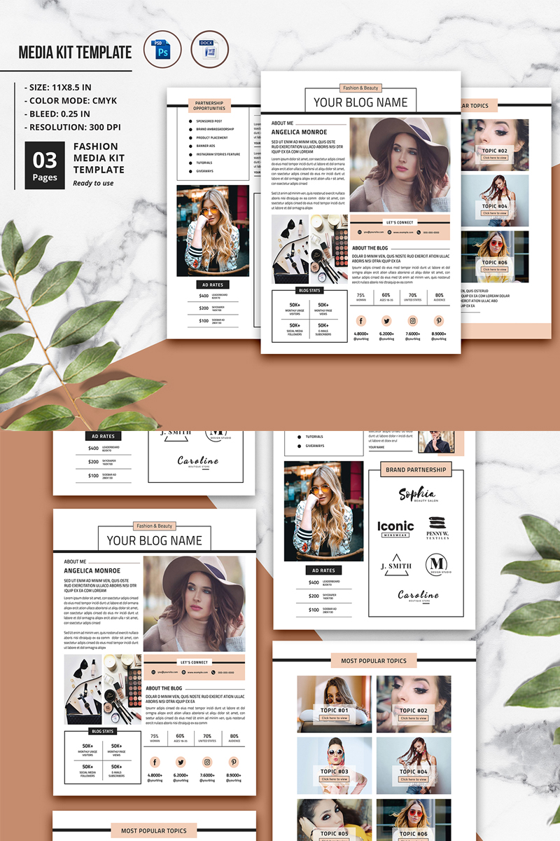 Download Фирменный стиль "Blogger Media Kit - Corporate Identity Template" / Blogger Media Kit - Corporate Identity Template - Фирменный стиль на тему графика media kit template fashion blog blogger press pitch deck photoshop social electronic marketing promoting advertising